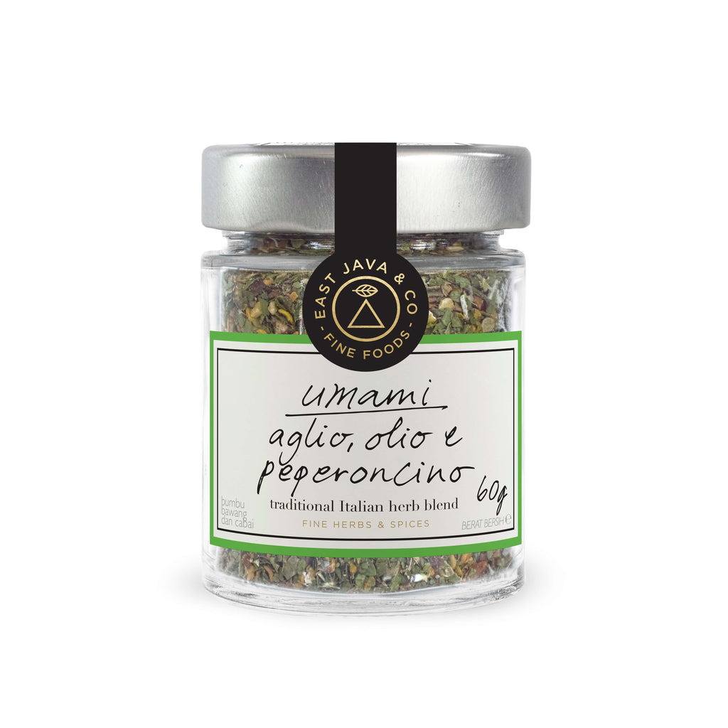 Our Aglio Olio e Peperoncino is a traditional Italian herb blend, perfect for sprinkling over pizza and pasta or mixing with olive oil to create a flavorful, aromatic, and delicious condiment.