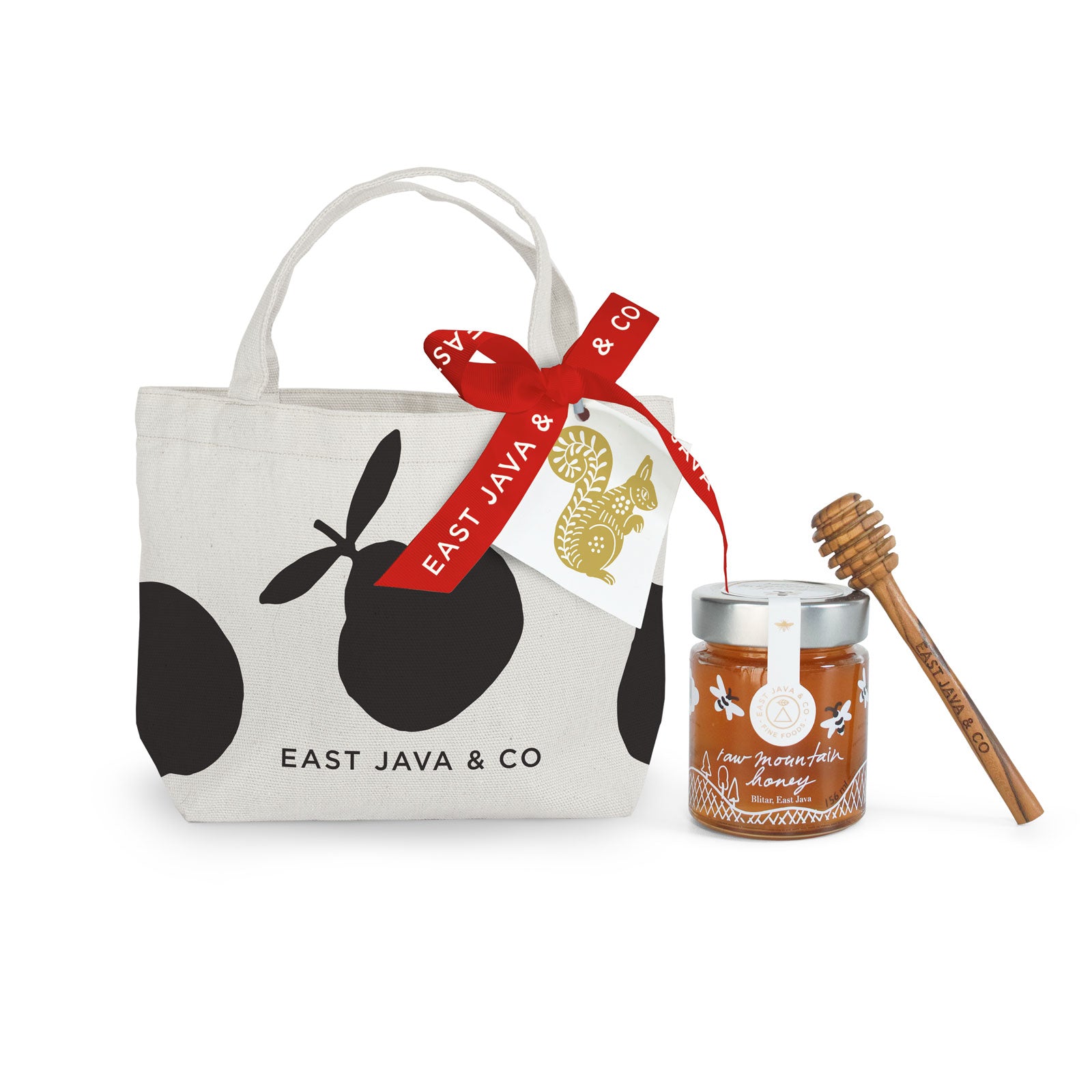 Raw Forest Mountain Honey, East Java & Co Teak Honey Spoon and East Java & Co Mini Tote Bag (see more in the details tab)